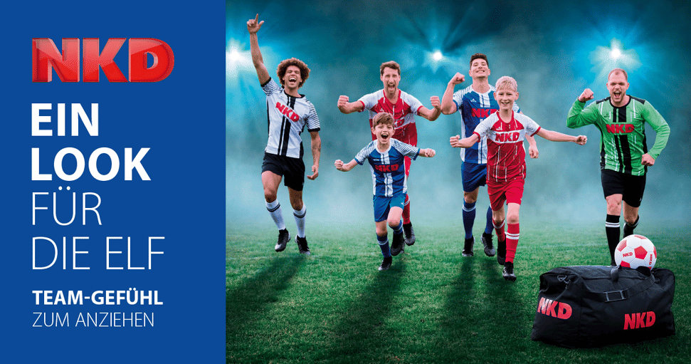 5 weitere GutscheineHobby-Kicker aufgepasst! Entdecke die perfekte Trainings-Ausrüstung für dich und dein Team – mit Trikots, Hosen und Stutzen in Wunschgröße und -farbe – und sichere dir mit dem NKD Knaller-Angebot das gesamte Set für nur 99,99€!